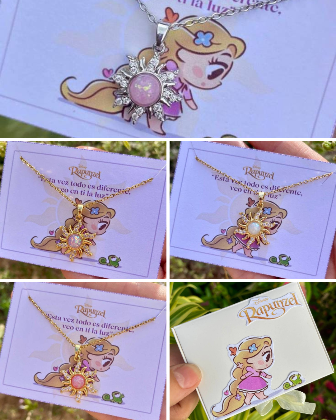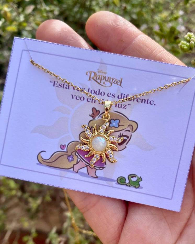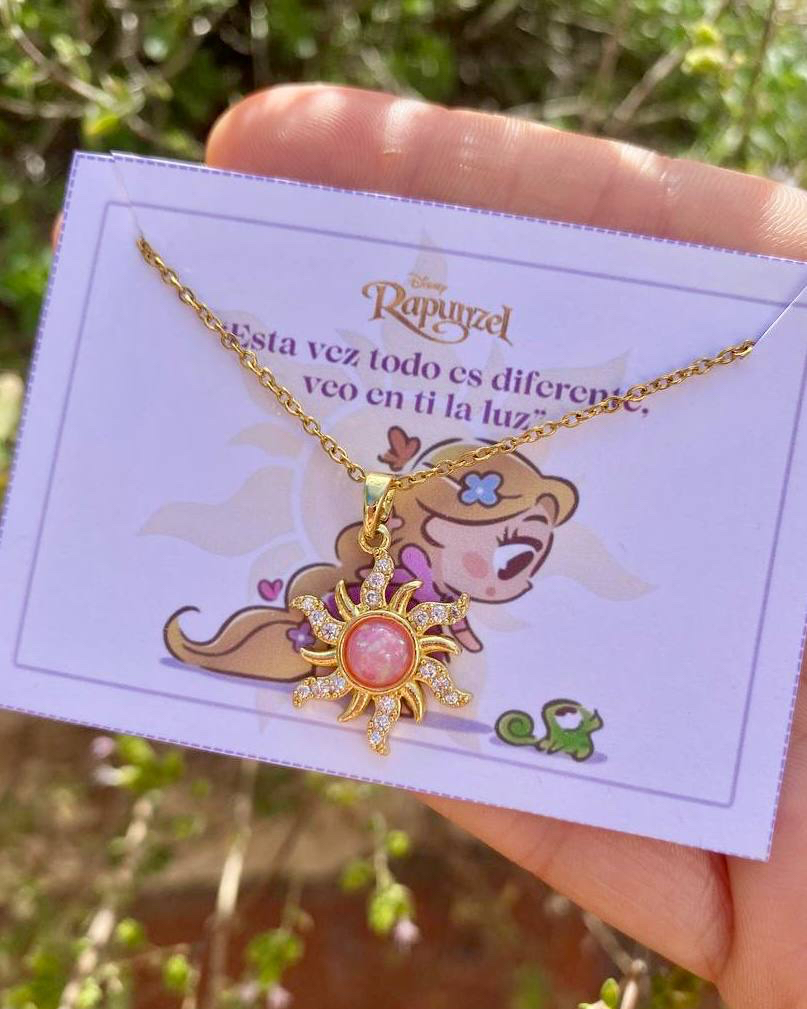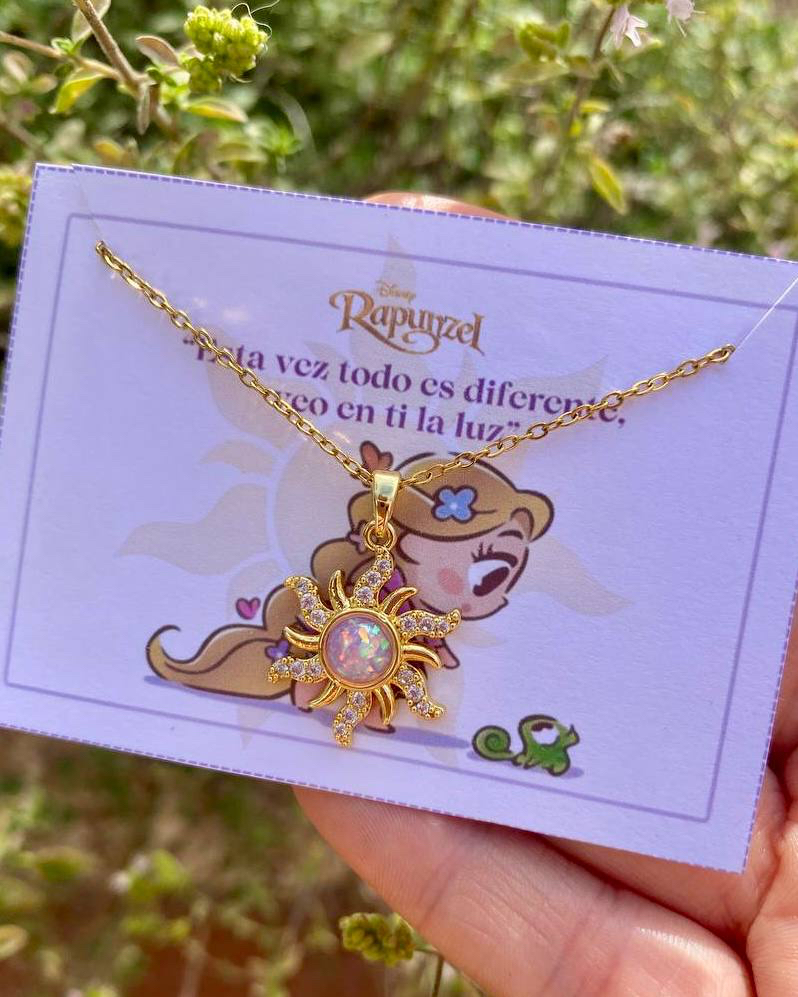 Collar Sol Rapunzel Chapado en Oro Real 18k y acero plateado (4 Modelos)
