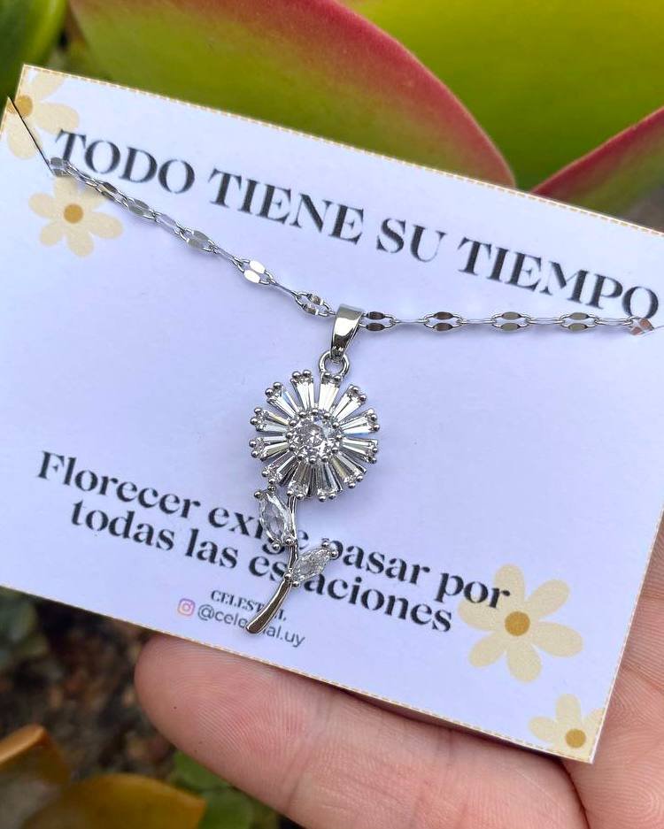 Collar de acero enchapado en Oro Real 18k (los dorados) el plateado baño platino con dijes flores giratorias enchapado en Oro Real 18k y el plateado baño de platino.