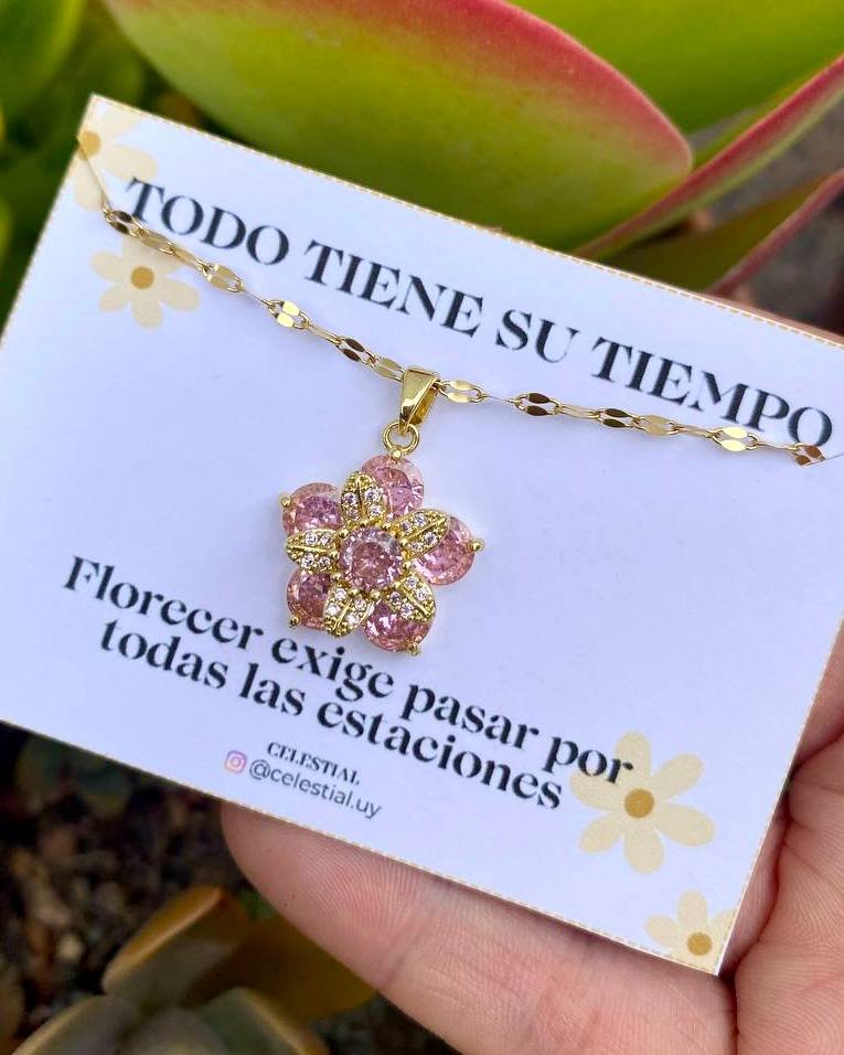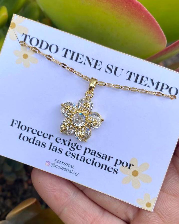 Collares acero Florales giratorios Chapado en Oro Real 18k (3 Modelos)