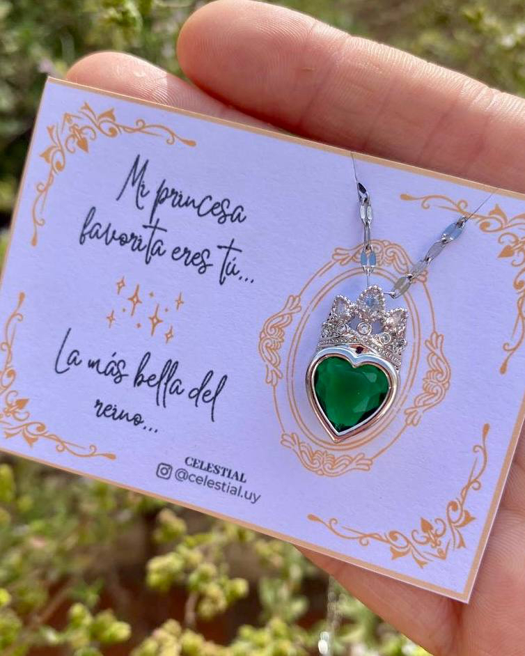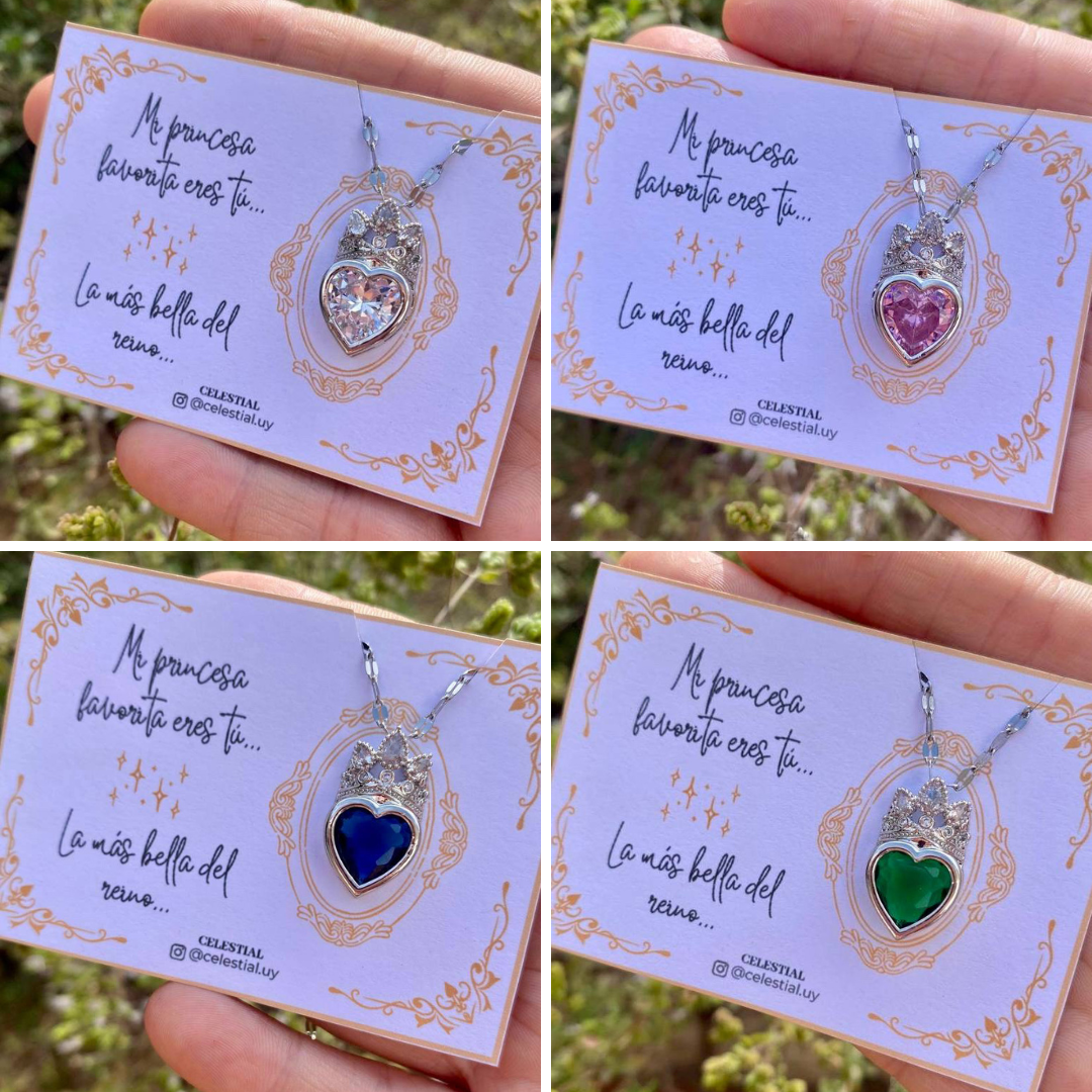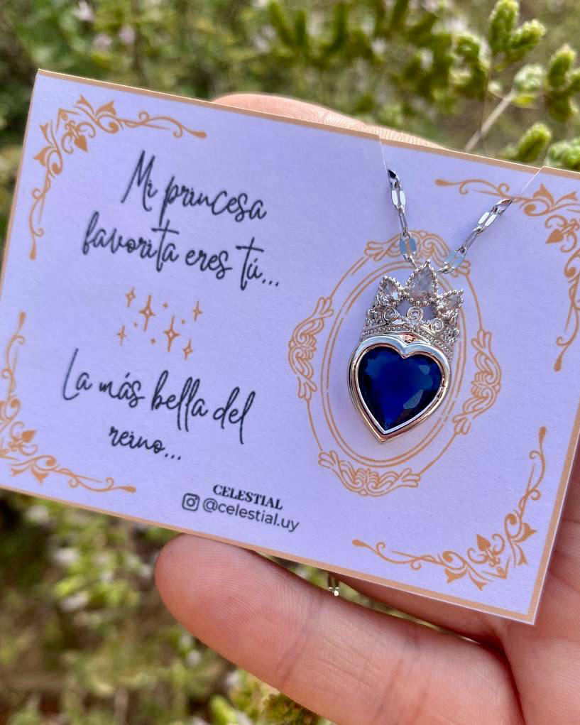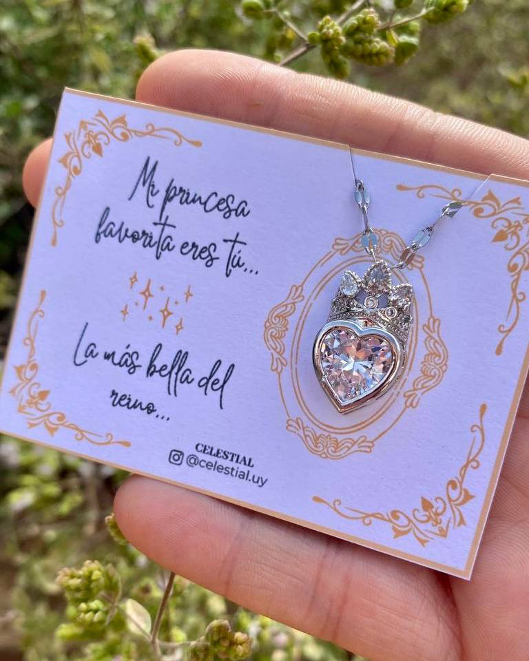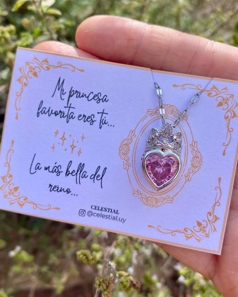 Collar de Acero corazón con corona motivo princesa